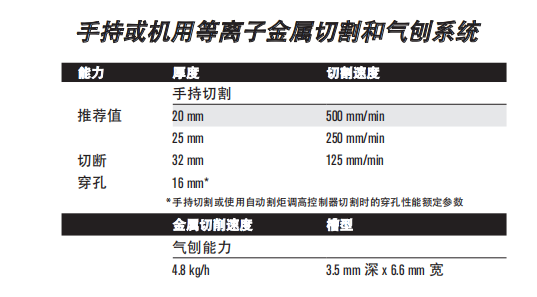 ? 切割速度快:在切割 12 mm 低碳鋼時,切割速度比火焰切割快 150%。 ? 獨特切割和氣刨質(zhì)量,減少了打磨和邊緣處理的時間。