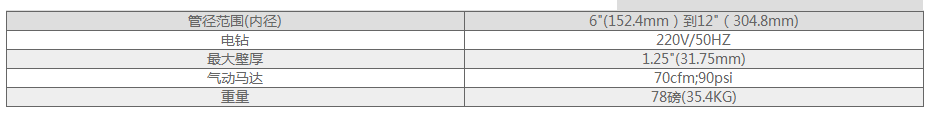 二個(gè)刀片安裝槽可同時(shí)進(jìn)行坡口、平口、去毛刺、內(nèi)徑鏜孔;單個(gè)心軸配合可換式脈塊,蓋了所有的工作管徑