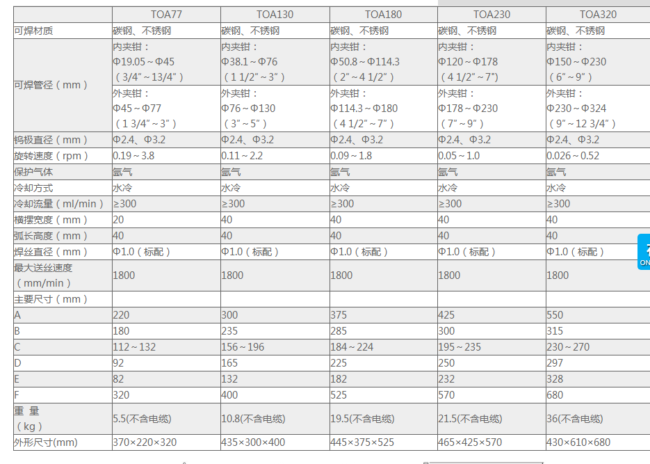 TOA系列全位置管管焊槍