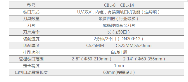 坡口效率:2分鐘/兩道口(DN200  SCH40)先進(jìn)的進(jìn)刀方式:伺服徑向進(jìn)刀